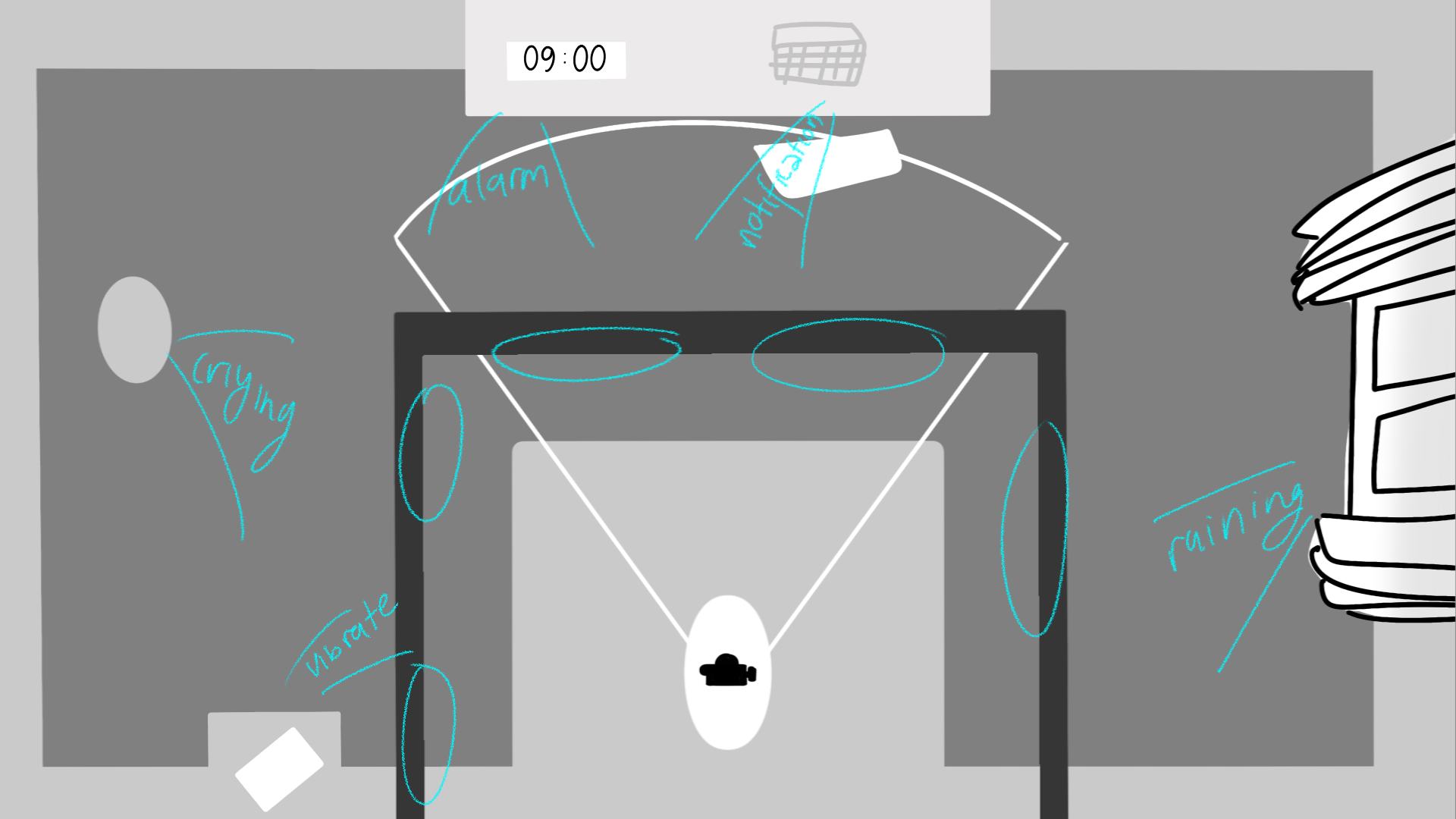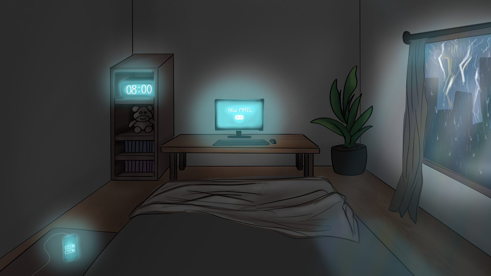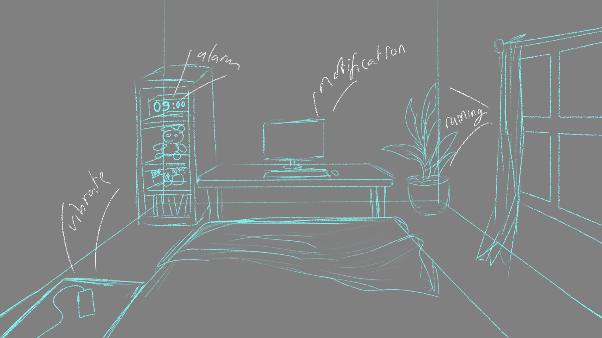 At the time of designing this project, it was rainy season in spring. When I wake up on a rainy morning, all I want to do is to snuggle up in bed. However, I know that I have a lot to do as my alarm kept ringing and the notification-only laptop kept reminding me of reality. I want to highlight this feeling in a form of interaction where the player can divert their focus or give their attention to a certain event in the game.