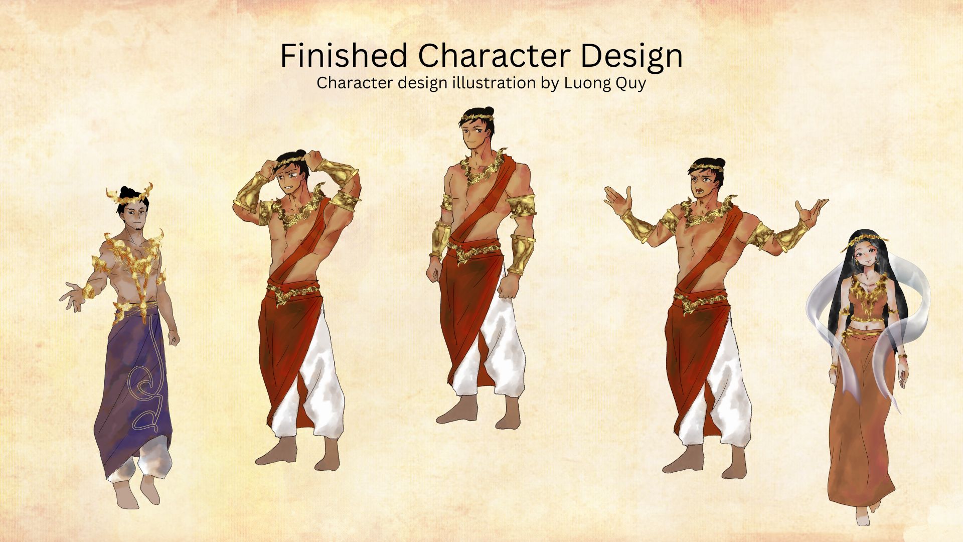 The initial character design differed from the final version. The original concept was created by Reilivia, but due to time constraints, Lường Quý refined the design and produced the final character asset. This asset was later edited and rigged for the animated version used in the game.