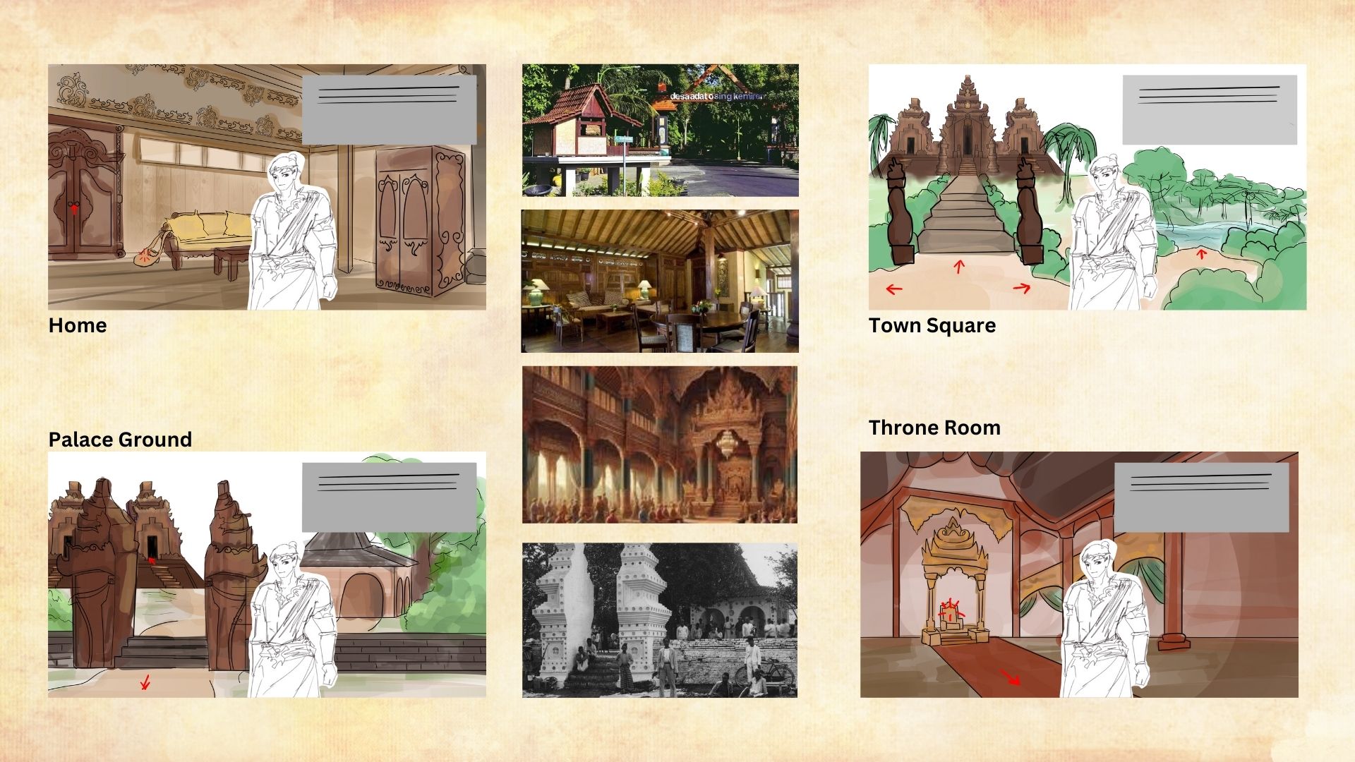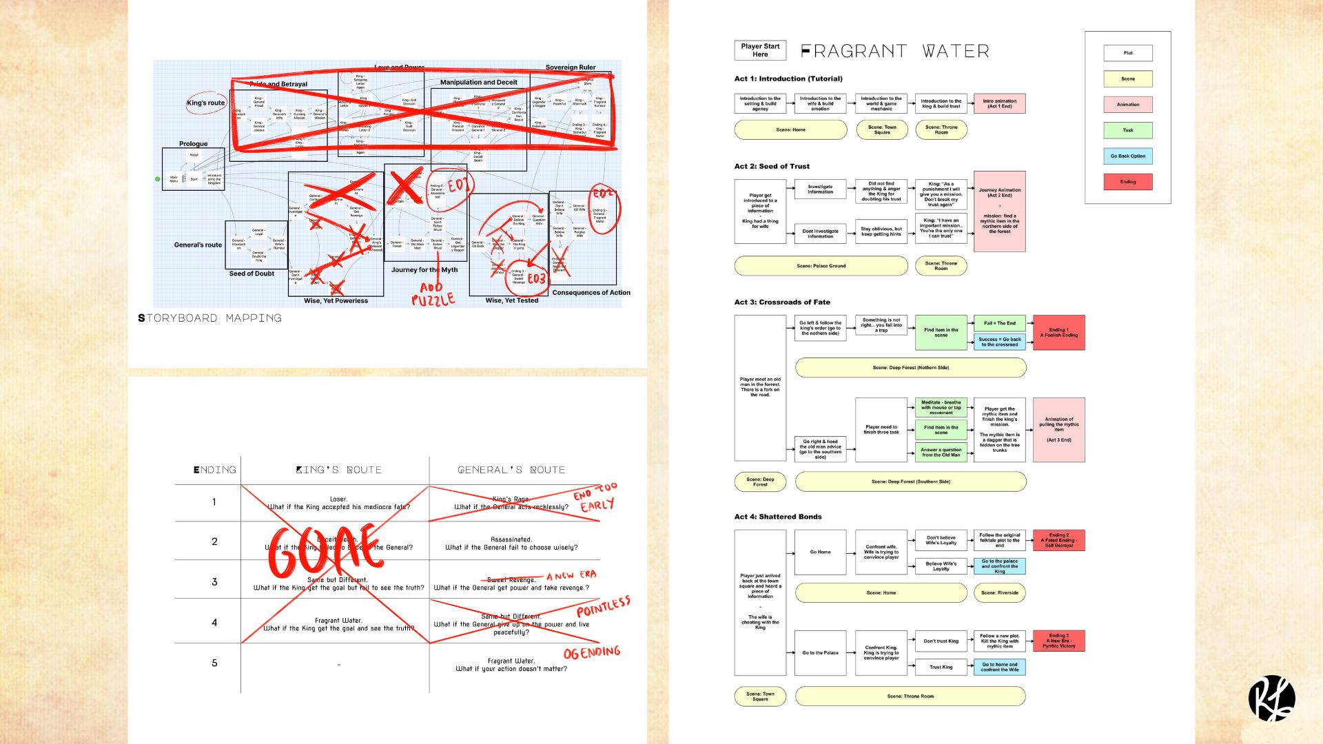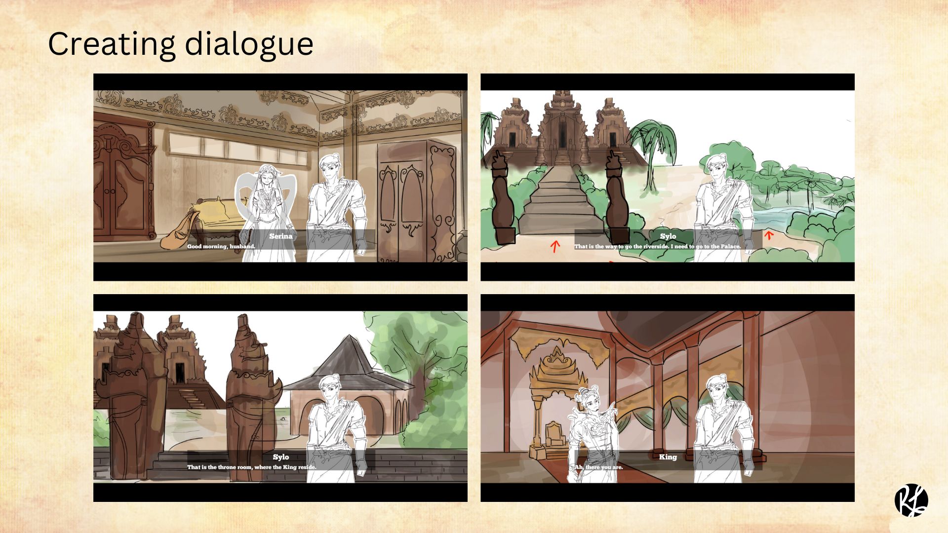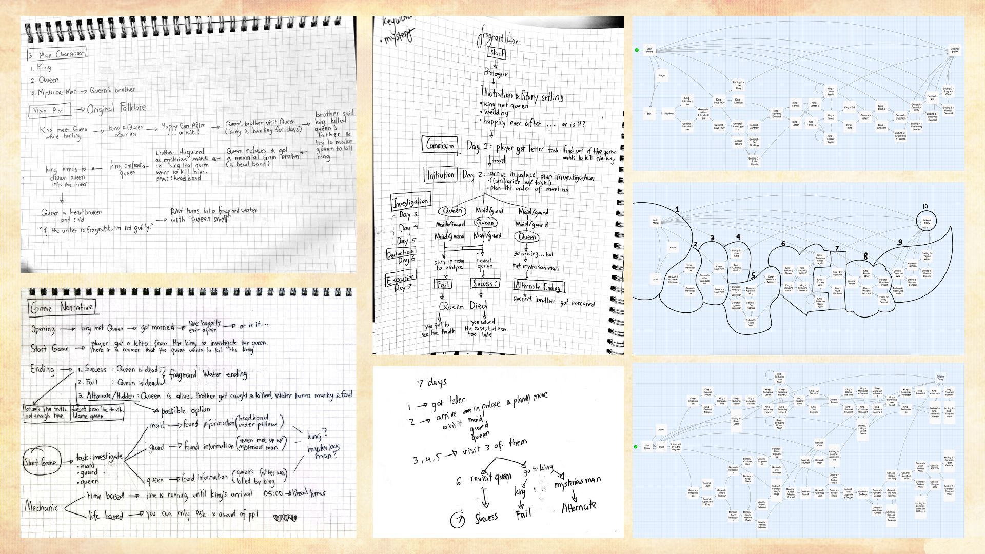 Fragrant Water is based on a Javanese folktale called “Asal Usul Banyuwangi”, which is believed to be the origin story of the Banyuwangi town. Like most folktales, this story also exists in multiple versions circulated within society. Therefore, a narrative design treatment is needed to translate it into interactive media such as a game. During the preproduction of the game, the narrative for the game evolve from the original folktale, to several points of view.