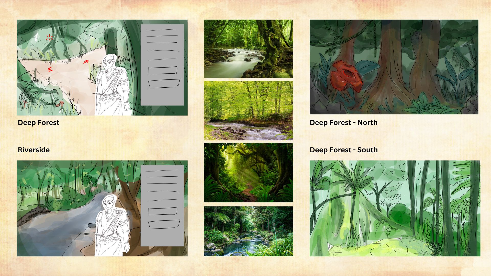 Background design plays a crucial role in interactive story games, particularly in Fragrant Water, as it is based on a specific region in Indonesia. While some of the forest scenes are not direct representations of the actual forests in East Java, they are intentionally designed to support the progression of the storyline.