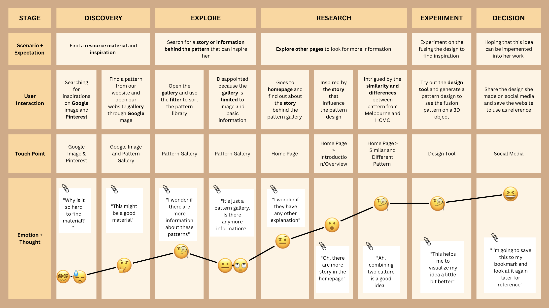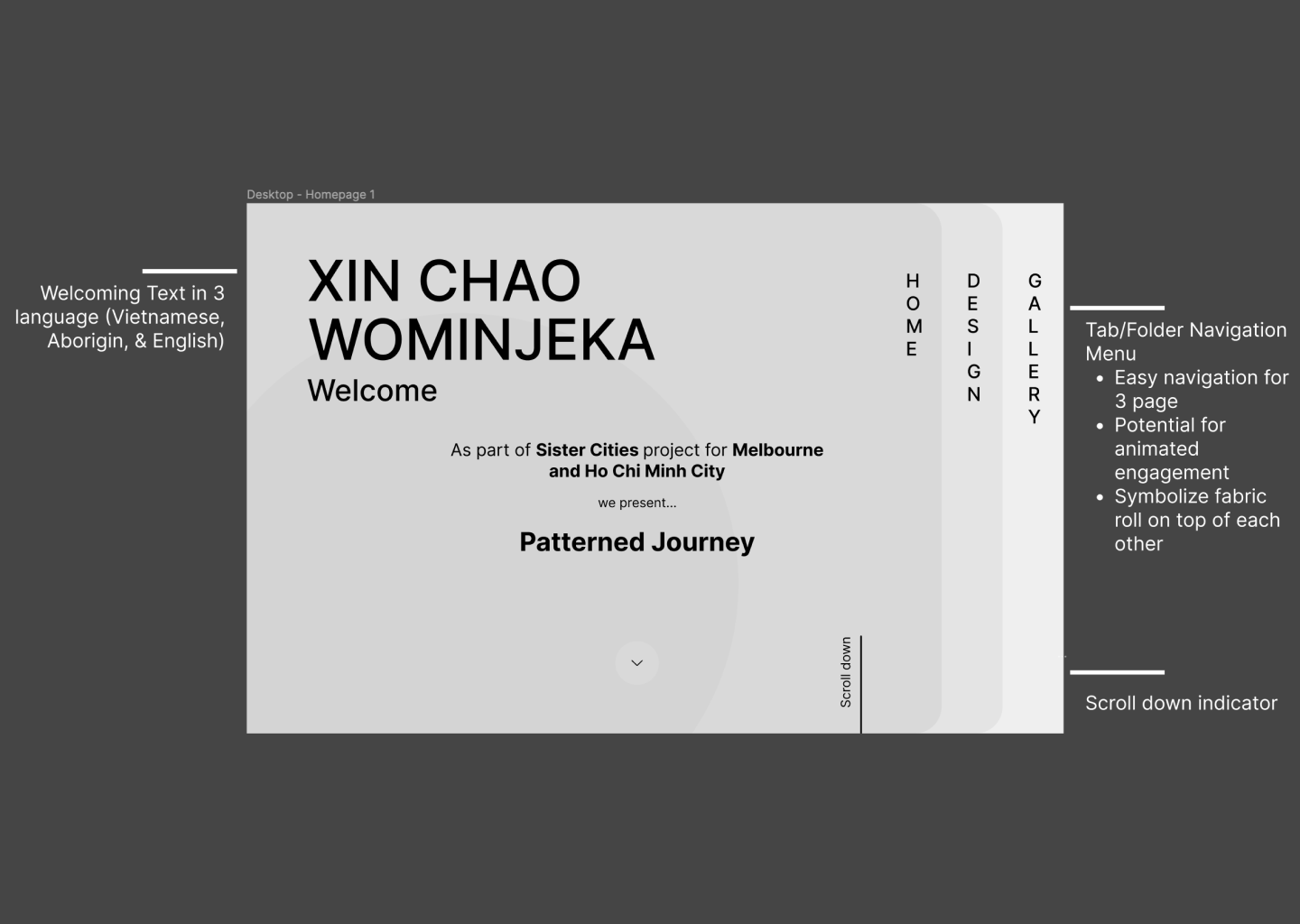 Patterned Journey is an interactive website that aims to share and educate individuals about the diverse fabric patterns of Melbourne and Ho Chi Minh City through storytelling and design.